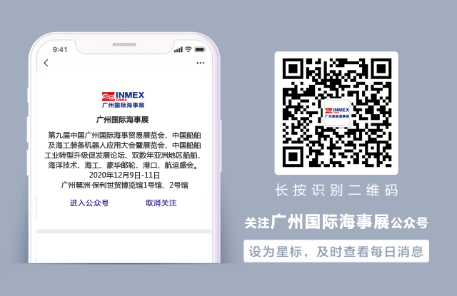 第九屆中國(guó)廣州國(guó)際海事貿(mào)易展覽會(huì)暨論壇(簡(jiǎn)稱(chēng)“廣州國(guó)際海事展”,INMEX China 2020)將于2020年12月9日-11日在廣州琶洲·保利世貿(mào)博覽館舉行,預(yù)計(jì)展覽總面積將達(dá)23,000平方米,匯集20多個(gè)國(guó)家和地區(qū)的800余家企業(yè)聯(lián)合參展,將由國(guó)際展區(qū)、船企展區(qū)、船用設(shè)備及先進(jìn)材料展區(qū)、船舶通導(dǎo)展區(qū)、郵輪產(chǎn)業(yè)展區(qū)、郵輪(客船)內(nèi)裝展區(qū)、海洋牧場(chǎng)展區(qū)、海上風(fēng)電展區(qū)、港口及航運(yùn)服務(wù)展區(qū)等九大展區(qū)組成,全面展示海事業(yè)上下游產(chǎn)業(yè)鏈的創(chuàng)新產(chǎn)品、技術(shù)和服務(wù)。