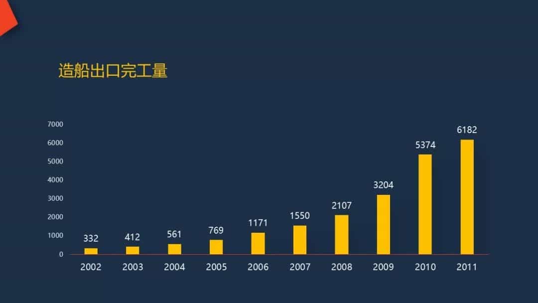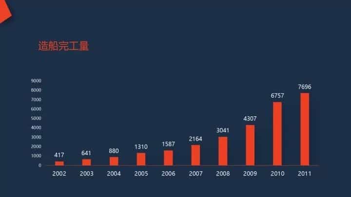 隨著各家企業(yè)投資興建大型造船設(shè)施的投入使用,中國(guó)的造船能力越來越強(qiáng),造船產(chǎn)量快速增長(zhǎng),2002-2011年間年均增長(zhǎng)率達(dá)到了38.9%。