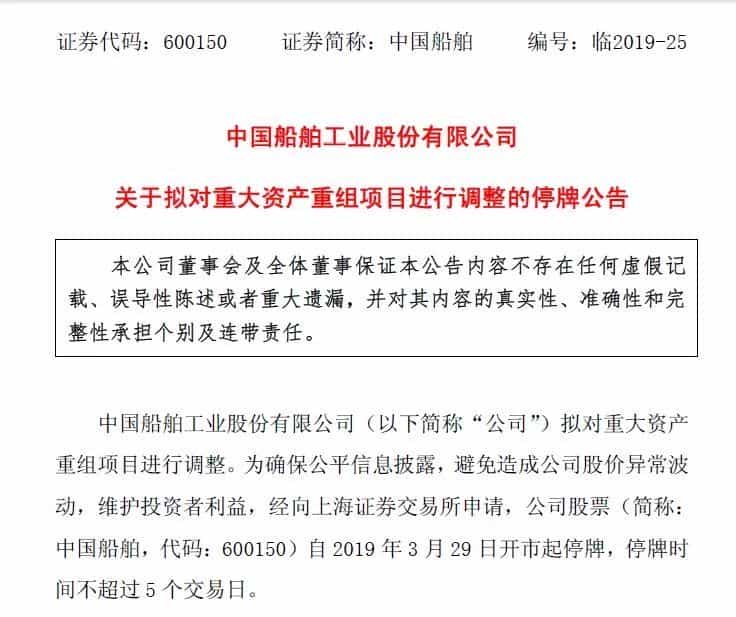 中國(guó)船舶公告,根據(jù)中船集團(tuán)戰(zhàn)略布局以及市場(chǎng)化債轉(zhuǎn)股項(xiàng)目情況變化,擬對(duì)公司重大資產(chǎn)重組項(xiàng)目進(jìn)行調(diào)整:擬置入江南造船、廣船國(guó)際、黃埔文沖等造船總裝資產(chǎn);置出滬東重機(jī)給中船防務(wù)。