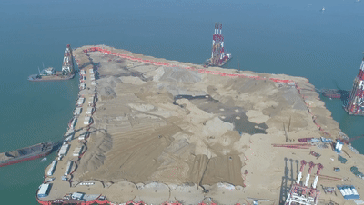 57個接近700噸巨型鋼圓筒,扎入海床以下25米。
