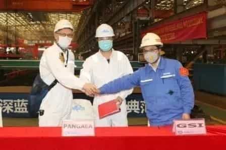 2月26日,中國(guó)船舶集團(tuán)所屬?gòu)V船國(guó)際為美國(guó)PANGAEA公司建造的9.5萬(wàn)噸冰區(qū)散貨船首制船順利開(kāi)工。該船為廣船國(guó)際在疫情期間開(kāi)工的首艘船。PANGAEA監(jiān)造組余小平與DNVGL船級(jí)社Krzysztof Kurek,及PANGAEA項(xiàng)目經(jīng)理何永才分別代表三方在開(kāi)工證明文件上簽字。