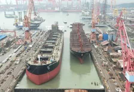 3月16日晚,中國船舶集團旗下黃埔文沖龍穴廠區(qū)完成2020年第一個塢次,黃埔文沖迄今建造的最大散貨船--中船租賃12萬噸散貨船首制船和太古2750TEU集裝箱船2#船按期順利出塢。