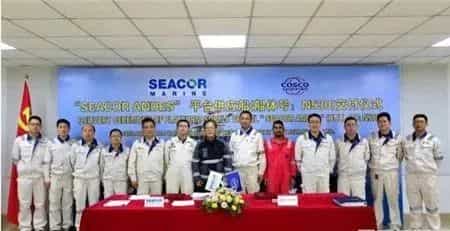 4月20日,舟山中遠(yuǎn)海運(yùn)重工為海工船運(yùn)營商SEACOR公司建造的平臺供應(yīng)船(PSV)項(xiàng)目“SEACOR ANDES”輪順利簽字交付。