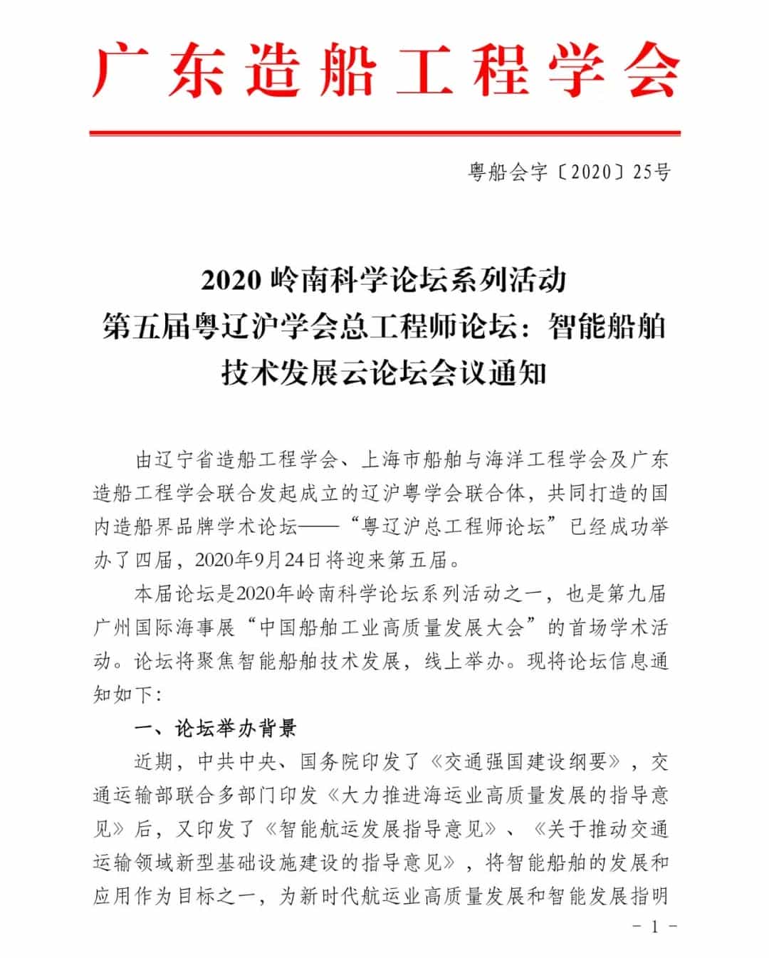 第五屆粵遼滬學(xué)會總工程師論壇:智能船舶技術(shù)發(fā)展云論壇會議通知