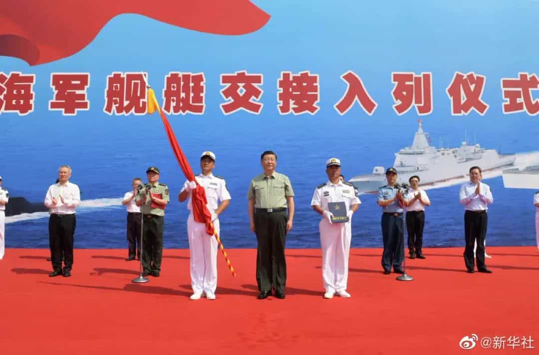 交接入列儀式在中國人民解放軍軍歌聲中結束。隨后,習近平登上新入列艦艇,檢閱艦艇儀仗隊,察看有關武器裝備,同官兵進行交流,并在航泊日志上鄭重簽名。