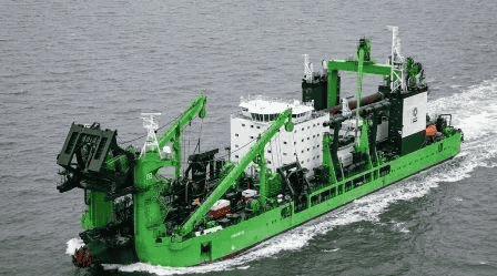 “Spartacus”號挖泥船于2017年9月開工,該船長164米,寬34米,總裝機容量為44180千瓦,能以前所未有的航速挖掘更堅硬的泥土,這也意味著這艘挖泥船能執(zhí)行以前需要靠炸藥和爆破進行的作業(yè)。
