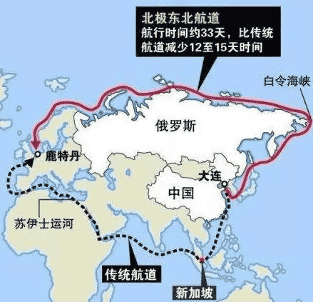 北海航線位于俄羅斯北極地區(qū)的專屬經(jīng)濟(jì)區(qū)內(nèi),是連接其遠(yuǎn)東和歐洲部分的三條交通路線之一。北海航線從靠近俄羅斯語(yǔ)挪威邊界的巴倫支海一直延伸至北太平洋白令海峽,全長(zhǎng)超過(guò)3000海里(5550公里),這是亞洲和歐洲之間最短的航線。相比傳統(tǒng)的蘇伊士運(yùn)河航線,北海航線能夠?qū)|亞和西北歐之間的航程縮短4000海里,航運(yùn)時(shí)間減少了大約兩周,并能削減二氧化碳排放量。特別是今年3月“長(zhǎng)賜輪”擱淺阻塞蘇伊士運(yùn)河事件,更加見(jiàn)證了航運(yùn)業(yè)對(duì)替代航線的需求。