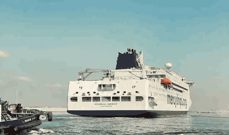 據(jù)了解,“Global Mercy”號總噸位37000噸,總長174.1米、型寬28.6米,設計吃水6.15米,設計水線以上凈空高度41米,服務航速12節(jié),舒適度和安全性標準均按照豪華郵輪標準建造,入級英國勞氏船級社。出航時定員500人,在港??科陂g額定載客可達到950人。