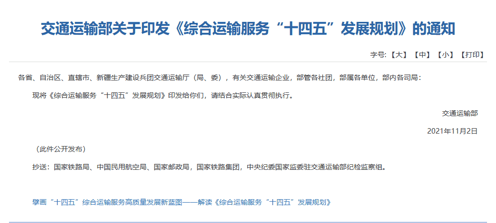 規(guī)劃明確,深入推進(jìn)多式聯(lián)運(yùn)發(fā)展,推動(dòng)鐵水、公鐵、空陸等聯(lián)運(yùn)發(fā)展,加強(qiáng)鐵路(高鐵)快運(yùn)、航空貨運(yùn)能力建設(shè),創(chuàng)新“干線多式聯(lián)運(yùn)+區(qū)域分撥”發(fā)展模式,深入推進(jìn)多式聯(lián)運(yùn)示范工程建設(shè),構(gòu)建空中、水上、地面與地下融合協(xié)同的多式聯(lián)運(yùn)網(wǎng)絡(luò)。規(guī)劃提出,實(shí)施多式聯(lián)運(yùn)提速行動(dòng),到2025年,建設(shè)120項(xiàng)多式聯(lián)運(yùn)示范工程。大規(guī)模推廣應(yīng)用鐵路專用平車、滾裝船等專用載運(yùn)機(jī)具;推進(jìn)江海直達(dá)船型研發(fā)和推廣應(yīng)用;加快全國多式聯(lián)運(yùn)公共信息互聯(lián)互通,推動(dòng)鐵路、公路、水運(yùn)、航空以及海關(guān)、市場(chǎng)監(jiān)管等信息交互共享。