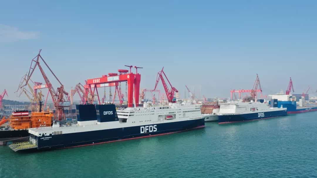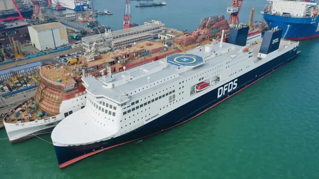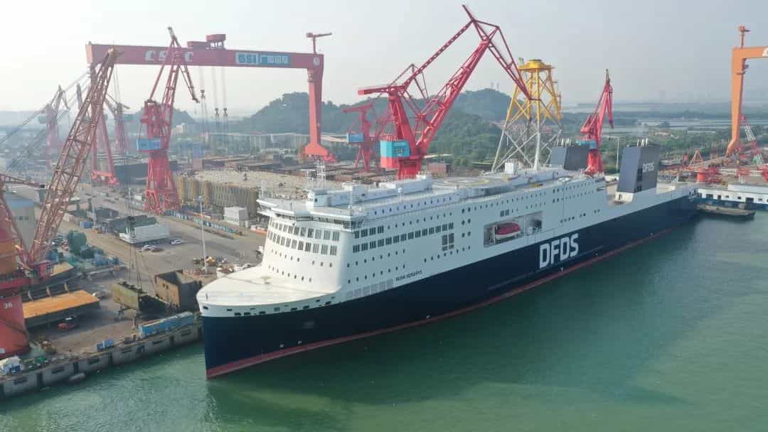12月14日,由中國船舶集團有限公司旗下廣船國際有限公司為北歐最大的航運和物流公司丹麥Det Forenede Dampskibs-Selskab公司建造的600客/4500米車道豪華客滾船“AURA SEAWAYS”號在南沙交付。