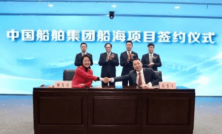 此外,此次簽約的船舶建造項目還包括:比利時CMB公司與青島北海船舶重工有限責(zé)任公司、中船貿(mào)易聯(lián)合簽署的2艘21萬噸氨燃料預(yù)留散貨船項目;華夏金融租賃有限公司與中船澄西船舶修造有限公司、中船貿(mào)易聯(lián)合簽署的8艘63500噸散貨船項目;德翔海運有限公司與上海外高橋造船有限公司、中船貿(mào)易聯(lián)合簽署的2艘7000TEU集裝箱船項目;SCHOELLER集團旗下新加坡AAL公司與中船黃埔文沖船舶有限公司、中船貿(mào)易聯(lián)合簽署的4+2艘32000噸多用途重吊船項目;韓國H-Line航運公司與廣船國際有限公司、中船貿(mào)易聯(lián)合簽署的2艘7000車雙燃料汽車運輸船(PCTC)項目;MSC地中海航運集團旗下渡輪運營商GNV公司與廣船國際簽署的2艘1500客/3100米車道豪華客滾船項目,以及中國船舶(香港)航運租賃有限公司與江南造船(集團)有限責(zé)任公司簽署的1+1艘超大型LNG運輸船建造意向書。