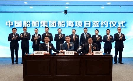 此次簽約項目中,包括招商局集團有限公司旗下成員單位與中國船舶集團旗下成員單位簽署的6個項目。分別是:招商局能源運輸股份有限公司與大連船舶重工集團有限公司、中國船舶工業(yè)貿(mào)易有限公司聯(lián)合簽署的1+1艘超大型液化天然氣(LNG)運輸船建造意向書;招商局工業(yè)集團有限公司旗下船廠與中國船舶集團柴油機有限公司分別簽署的5+2艘7000車滾裝運輸船主機項目、4+2艘7000車滾裝運輸船主機項目以及2艘5500立方米液化石油氣(LPG)運輸船主機項目,招商局海通貿(mào)易有限公司與中國船舶集團第七二五研究所旗下青島雙瑞海洋環(huán)境工程有限公司簽署的壓載水處理系統(tǒng)合同訂單,以及LNG供氣系統(tǒng)(FGSS)合作協(xié)議。