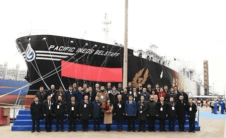 12月28日,由中國船舶集團(tuán)旗下中船貿(mào)易和江南造船作為聯(lián)合賣方,為交銀租賃和山東海洋集團(tuán)下屬太平洋氣體船公司(Pacific Gas)建造的全球最大艙容、世界首制采用B型艙的99000立方超大型乙烷運(yùn)輸船(VLEC)“PACIFIC INEOS BELSTAFF”正式命名交付。