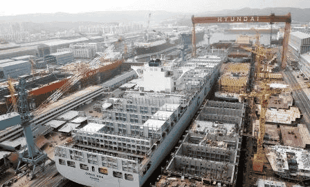 據悉,現代重工集團負責造船業(yè)務的二級控股公司韓國造船海洋,已與馬士基集團簽訂了4艘16000TEU級甲醇雙燃料動力超大型集裝箱船的建造合同,合同總金額約8000億韓元(約合6.73億美元)。