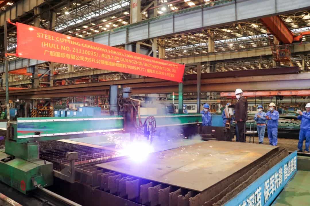 近日,由中國船舶集團(tuán)旗下廣船國際為挪威SFL公司建造的7000車雙燃料汽車運(yùn)輸船(PCTC)首制船舉行開工儀式。