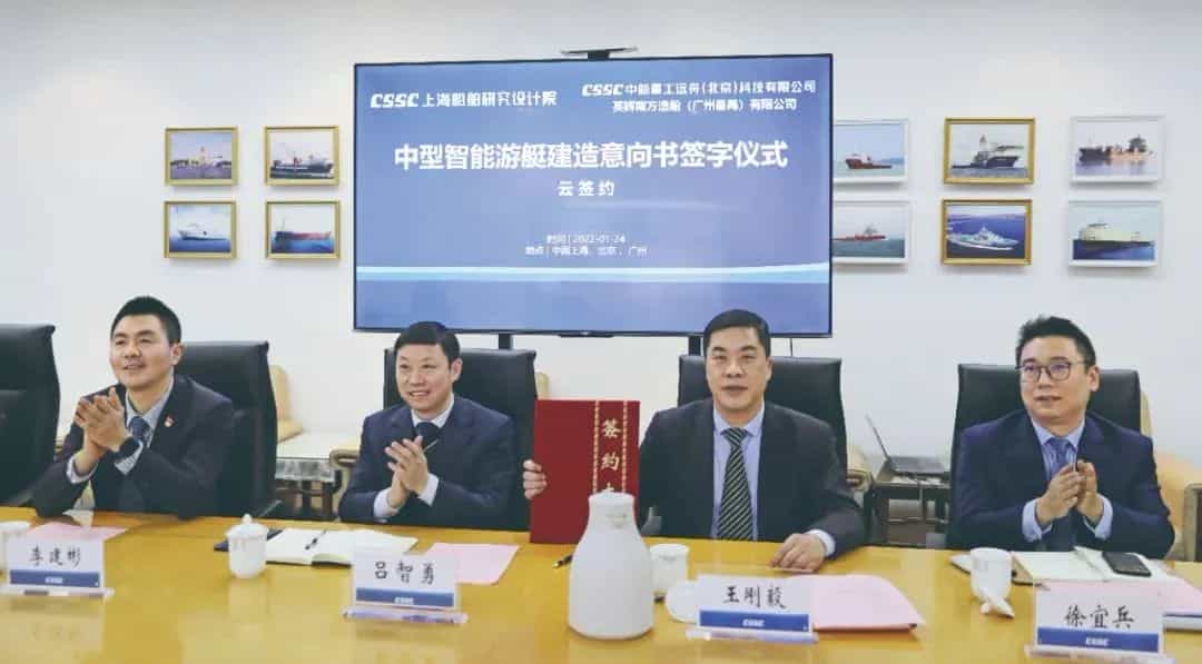 近日,中國(guó)船舶集團(tuán)有限公司旗下上海船舶研究設(shè)計(jì)院與遠(yuǎn)舟(北京)科技有限公司下屬英輝南方造船(廣州番禺)有限公司在上海正式簽訂我國(guó)首艘中型自主航行智能游艇建造合同。