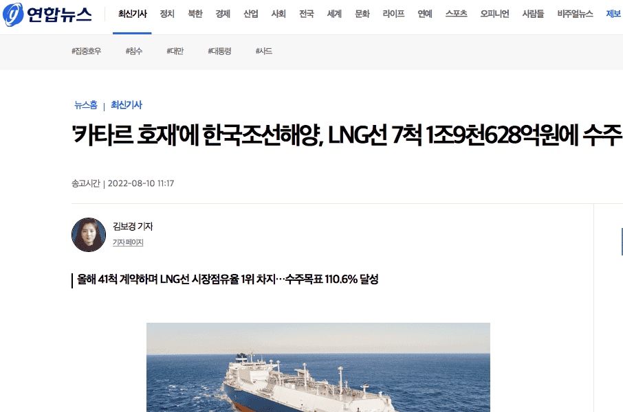 韓聯(lián)社報(bào)道稱,上述7艘LNG運(yùn)輸船應(yīng)該是卡塔爾能源LNG項(xiàng)目的后續(xù)生效訂單。如果上述判斷屬實(shí),截至目前,韓國船企的卡塔爾能源相關(guān)項(xiàng)目LNG運(yùn)輸船訂單已生效33艘,其中韓國造船海洋已生效17艘。