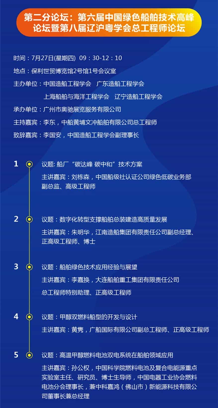 7月27日09:30-12:10,“2023第四屆中國船舶工業(yè)轉(zhuǎn)型升級(jí)高質(zhì)量發(fā)展論壇”第二分論壇“第六屆中國綠色船舶技術(shù)高峰論壇暨第八屆遼滬粵學(xué)會(huì)總工程師論壇”,將于廣州琶洲保利世貿(mào)博覽館2號(hào)館1號(hào)會(huì)議室召開。