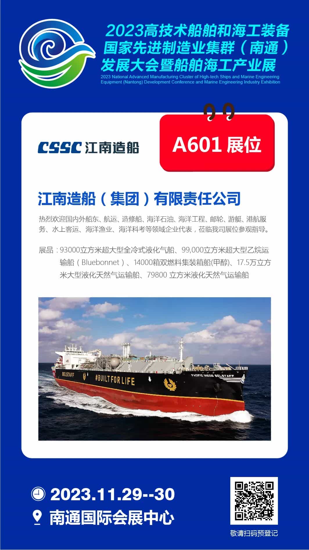 2023年11月29-30日,南通國際會展中心A601展位,江南造船與全球船舶人相聚南通,走進世界級船舶海工先進制造業(yè)集群!
