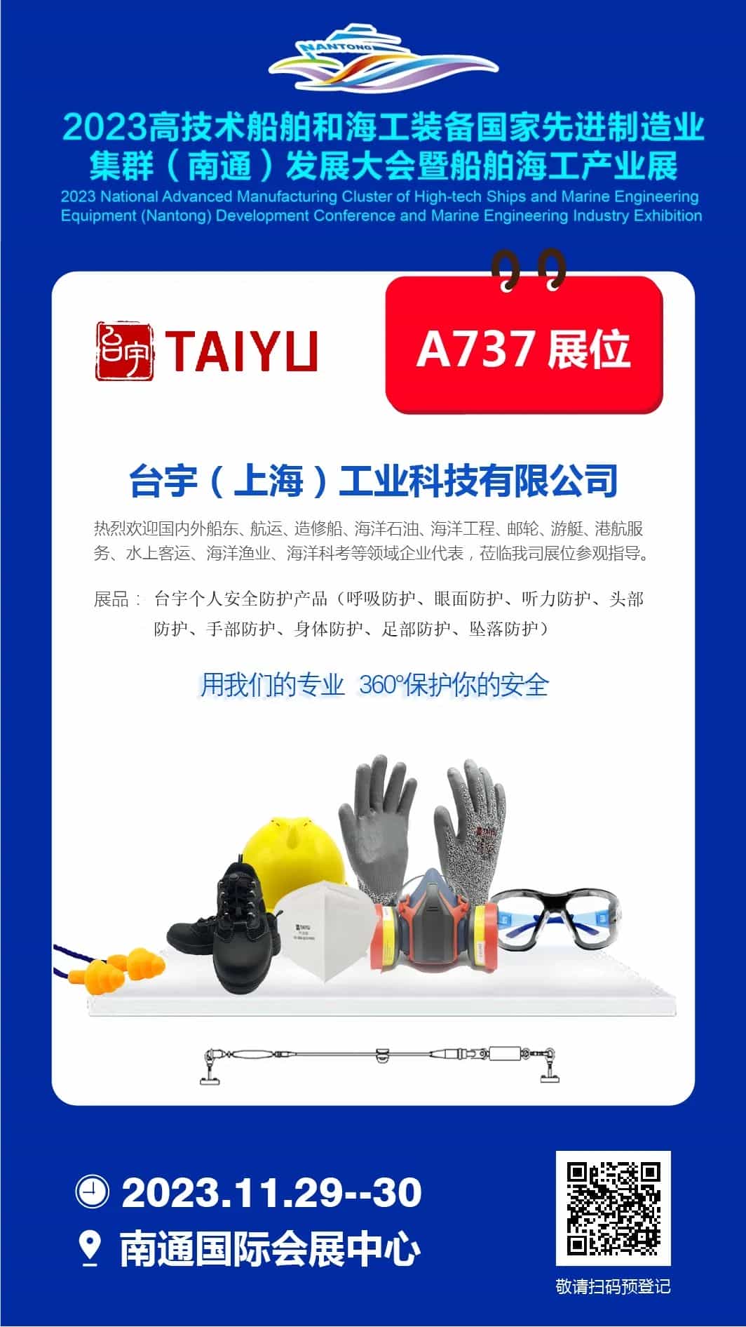 2023年11月29-30日,南通國際會展中心A737展位,臺宇與全球船舶人相約南通,走進世界級船舶海工先進制造業(yè)集群!