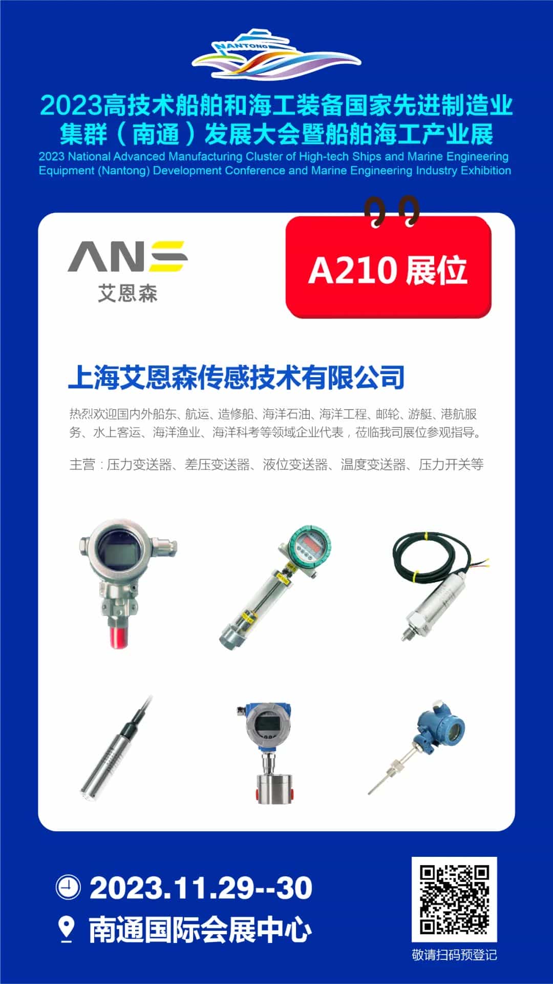 2023年11月29-30日,南通國(guó)際會(huì)展中心A210展位,上海艾恩森與全球船舶人相約南通,走進(jìn)世界級(jí)船舶海工先進(jìn)制造業(yè)集群!