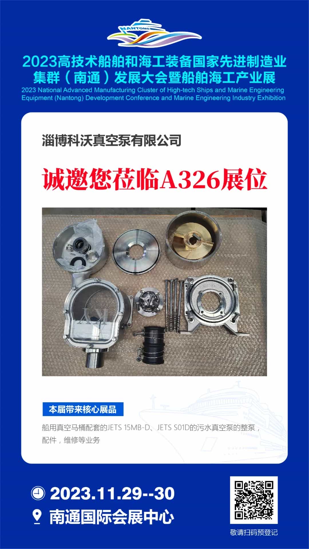 2023年11月29-30日,南通國際會展中心A326展位,科沃真空泵與全球船舶人相約南通,走進世界級船舶海工先進制造業(yè)集群!