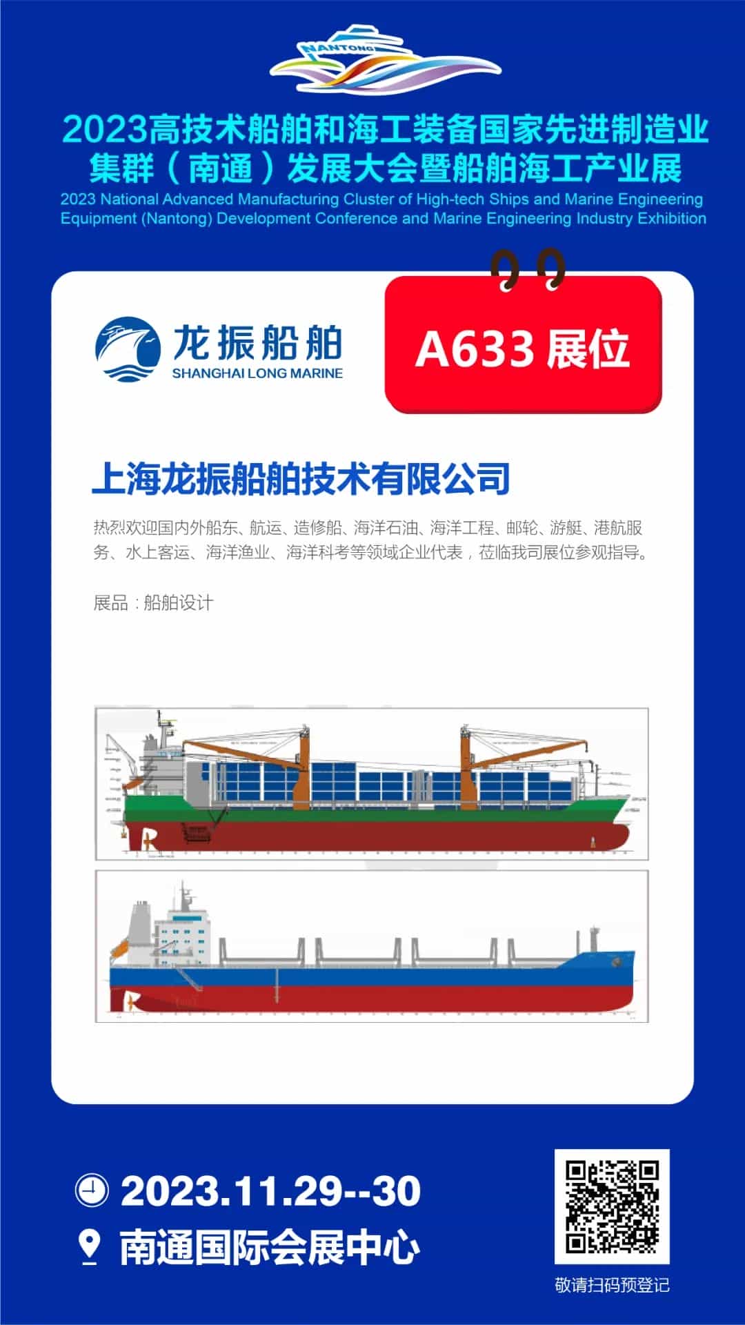 2023年11月29-30日,南通國際會展中心A633展位,龍振船舶與全球船舶人相約南通,走進世界級船舶海工先進制造業(yè)集群!