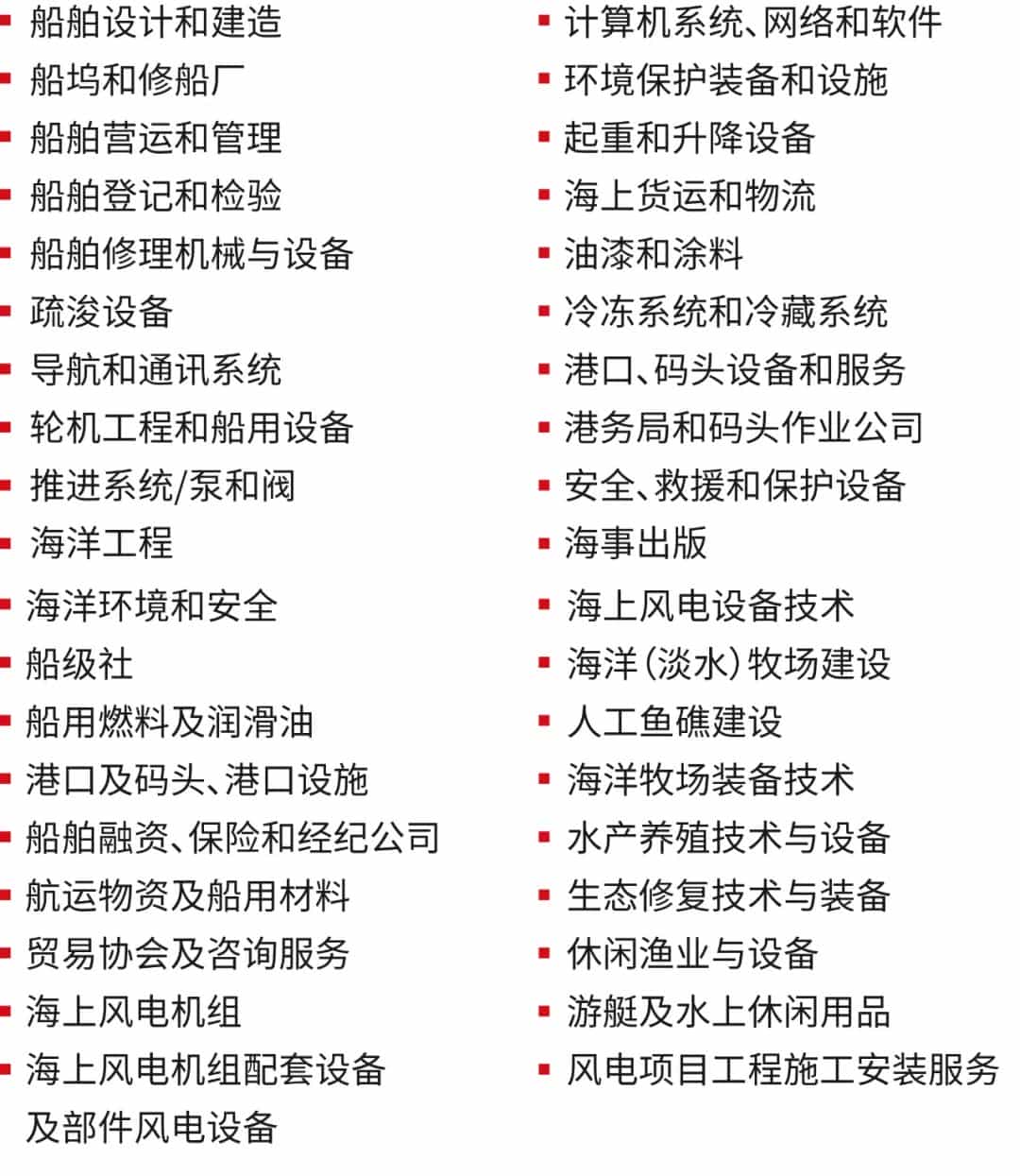 展會(huì)設(shè)九大展區(qū),將重點(diǎn)邀請(qǐng)海上風(fēng)電、造修船、船東、海洋工程、海洋石油、港口及海裝、海洋牧場(chǎng)、智能船舶及數(shù)字化、海警、港務(wù)、航道、打撈、救助、水上客運(yùn)、海洋科考等領(lǐng)域的企業(yè)決策者參觀參會(huì),協(xié)助參展企業(yè)開(kāi)展商貿(mào)交流與合作。