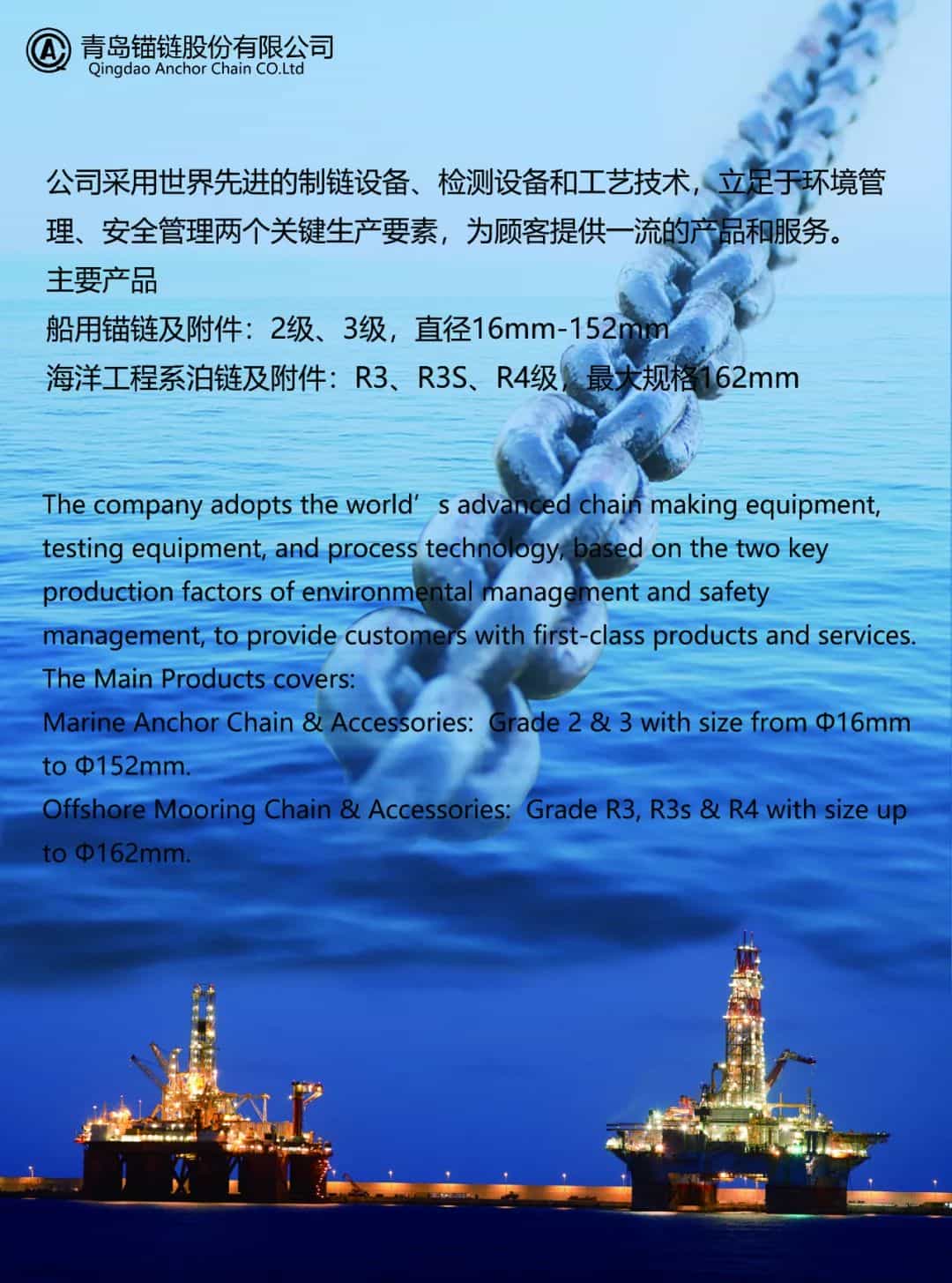 青島錨鏈股份有限公司(簡稱“青島錨鏈”,展位號1B60)始建于1958年,經過半個多世紀的不懈努力,現(xiàn)已發(fā)展成為生產船用錨鏈和海洋工程系泊鏈的世界著名專業(yè)公司。