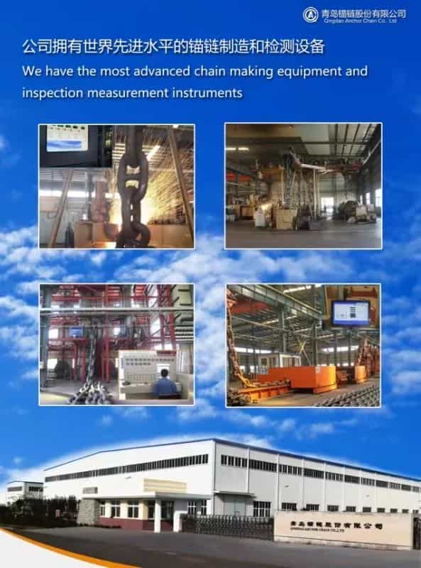 青島錨鏈先后獲得了ISO9001質量管理體系認證和美國ABS、法國BV、中國CCS、ZY、CR、挪威DNV、德國GL、韓國KR、英國LR、日本NK、意大利RINA、俄羅斯RMRS、印度IRS十一個國家十二個船級社的工廠認可。