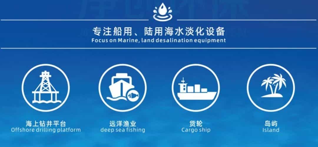 主要產(chǎn)品有:海水淡化設備、船用造水機、家用凈水器、井水山河水過濾設備、實驗室超純水機、變頻供水系統(tǒng)、去離子水設備、混床、反滲透設備、EDI超純水設備、超濾設備、納濾設備、中水回用設備、污水處理工程。