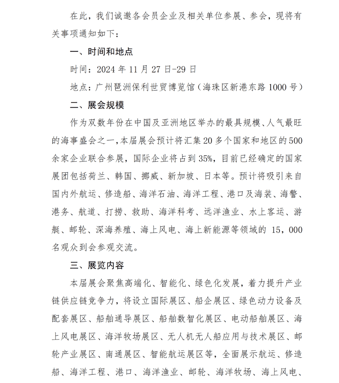 11月27日-29日,誠邀海洋石油、海洋工程、海洋風(fēng)電、航運(yùn)、造修船、海洋漁業(yè)、海洋科考、水上客運(yùn)及港務(wù)、海裝、海事、海警、航道、打撈、救助等領(lǐng)域的專業(yè)觀眾,蒞臨廣州琶洲保利世貿(mào)博覽館,在2024造船新周期,探索發(fā)展新機(jī)遇。