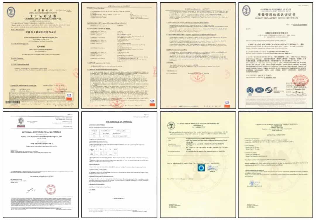 亞太錨鏈產(chǎn)品嚴(yán)格按照國家標(biāo)準(zhǔn)和船級社焊接規(guī)范要求生產(chǎn),先后通過了GB/T19001-2016/IS09001: 2015質(zhì)量管理體系的認(rèn)證,獲得中國、俄羅斯、法國、美國、印度、德國、挪威、日本、韓國、德國、意大利等多國船級社的認(rèn)證,以及地方船檢、漁檢認(rèn)證。